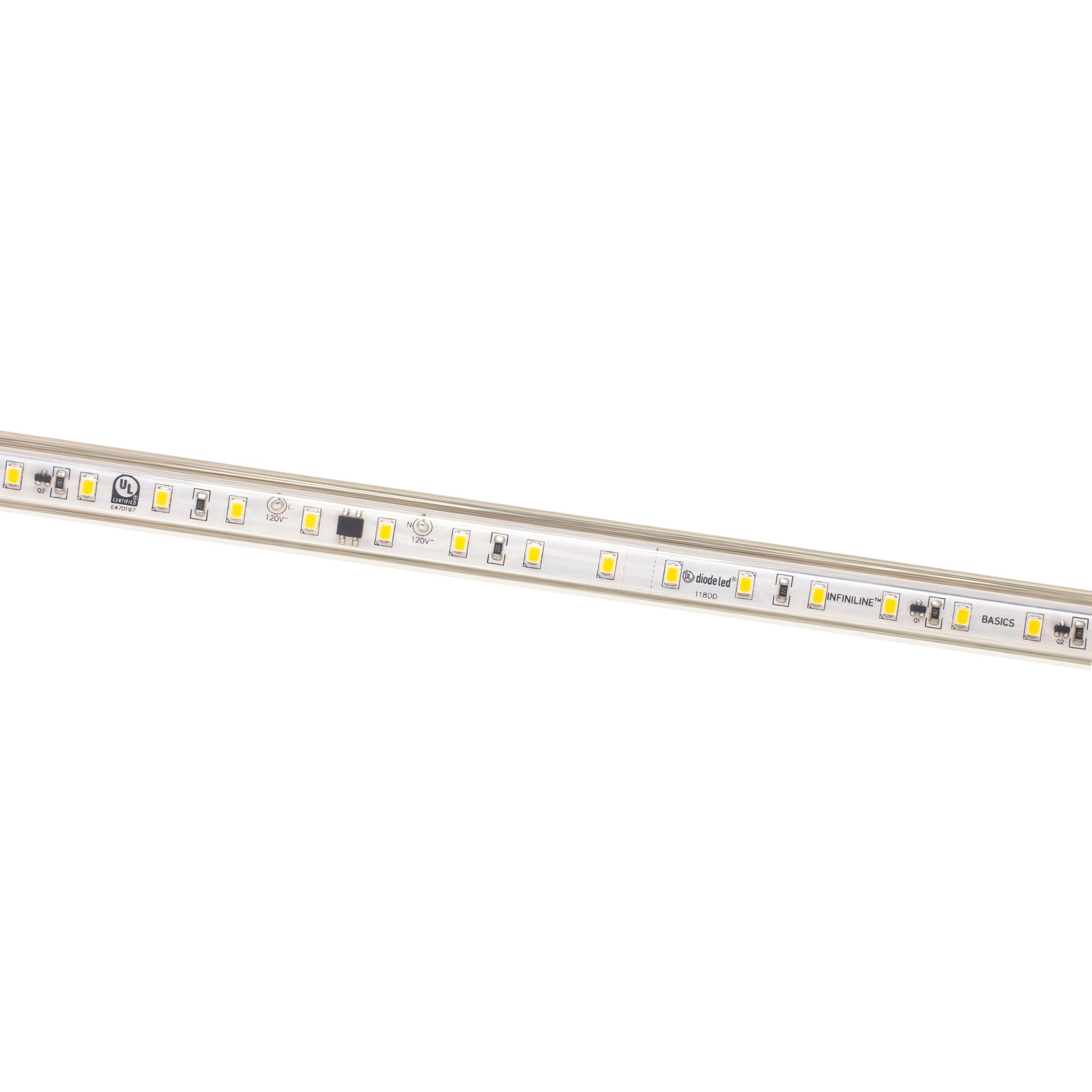 Driverless 120VAC flexible linear light for long runs up to 164 feet on a single power feed. Ideal for coves, and cost-effective to install.